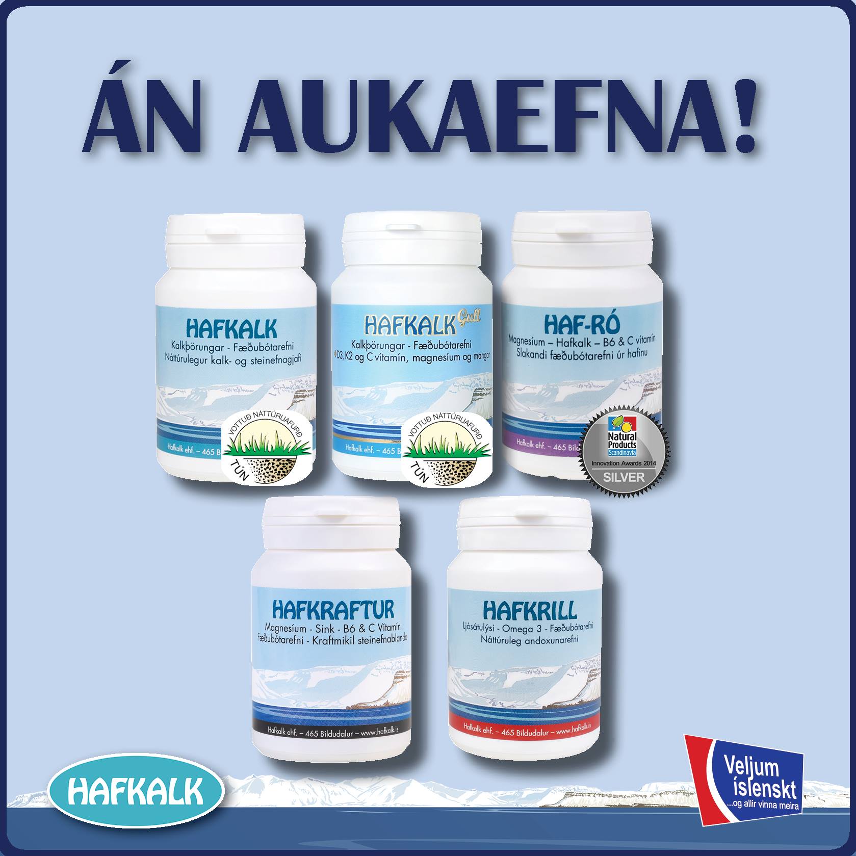 Hafkraftur er án allra hjálpar- og aukaefna s.s Magnesíum Sterats og Silica, rétt eins og aðrar vörur Hafkalks ehf.